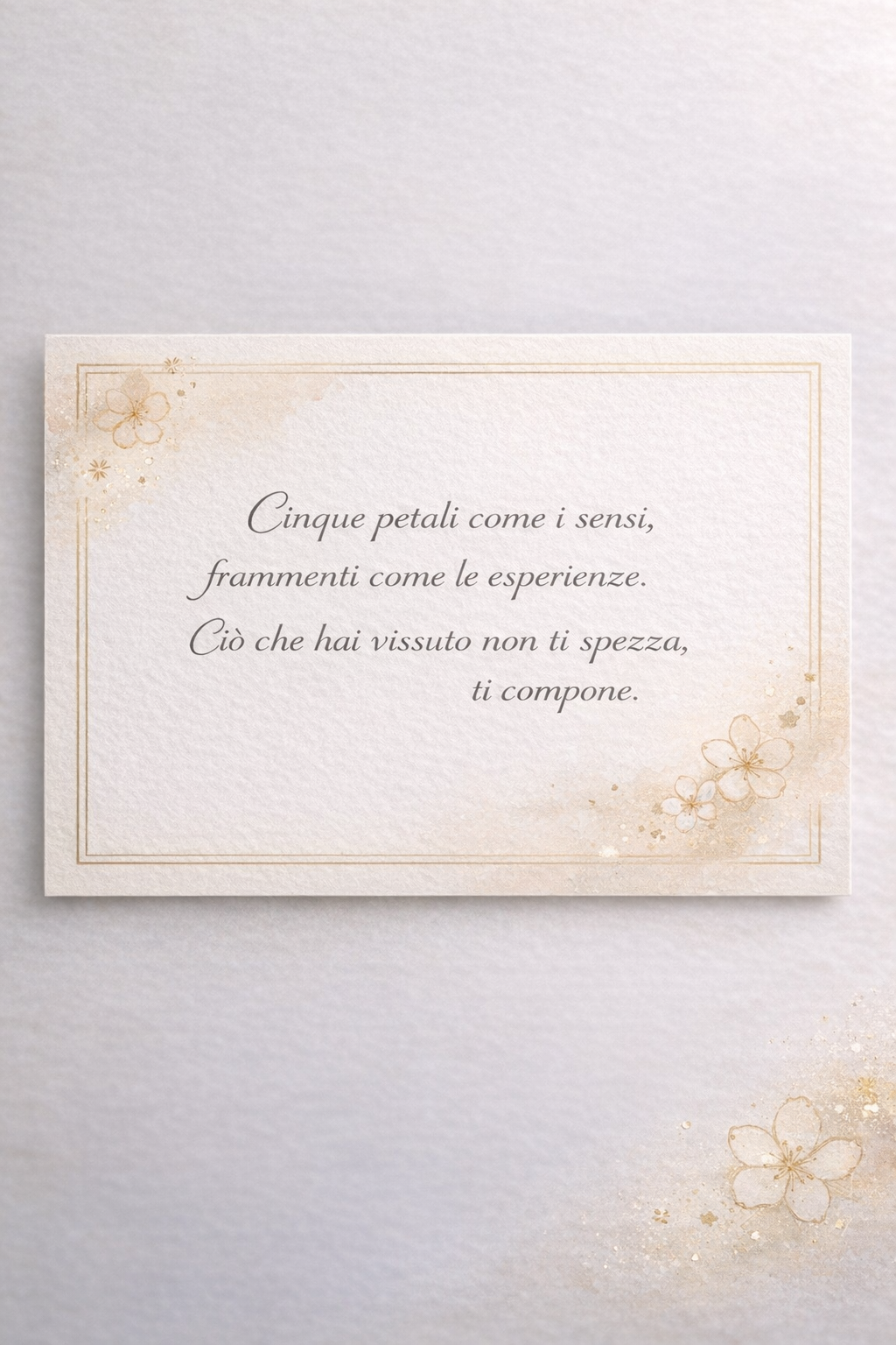 Cinque petali come i sensi, frammenti come le esperienze.